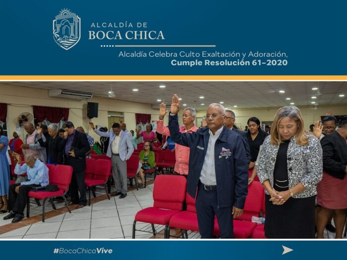 El pasado 31 de octubre, la Alcaldía de Boca Chica celebró su primer culto en honor a la Exaltación y Oración, según la Resolución 61-2020, en la Iglesia de Dios de la Profecía de Los Tanquesitos. Esta actividad, impulsada por el regidor Danilo Barceló, promueve un día de gratitud a Dios, con música de alabanza desde las 10 a.m.