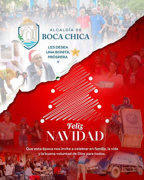 La Alcaldía de Boca Chica, junto a nuestro alcalde Ramón Aristide Candelaria Santana, les desea una Feliz Navidad.