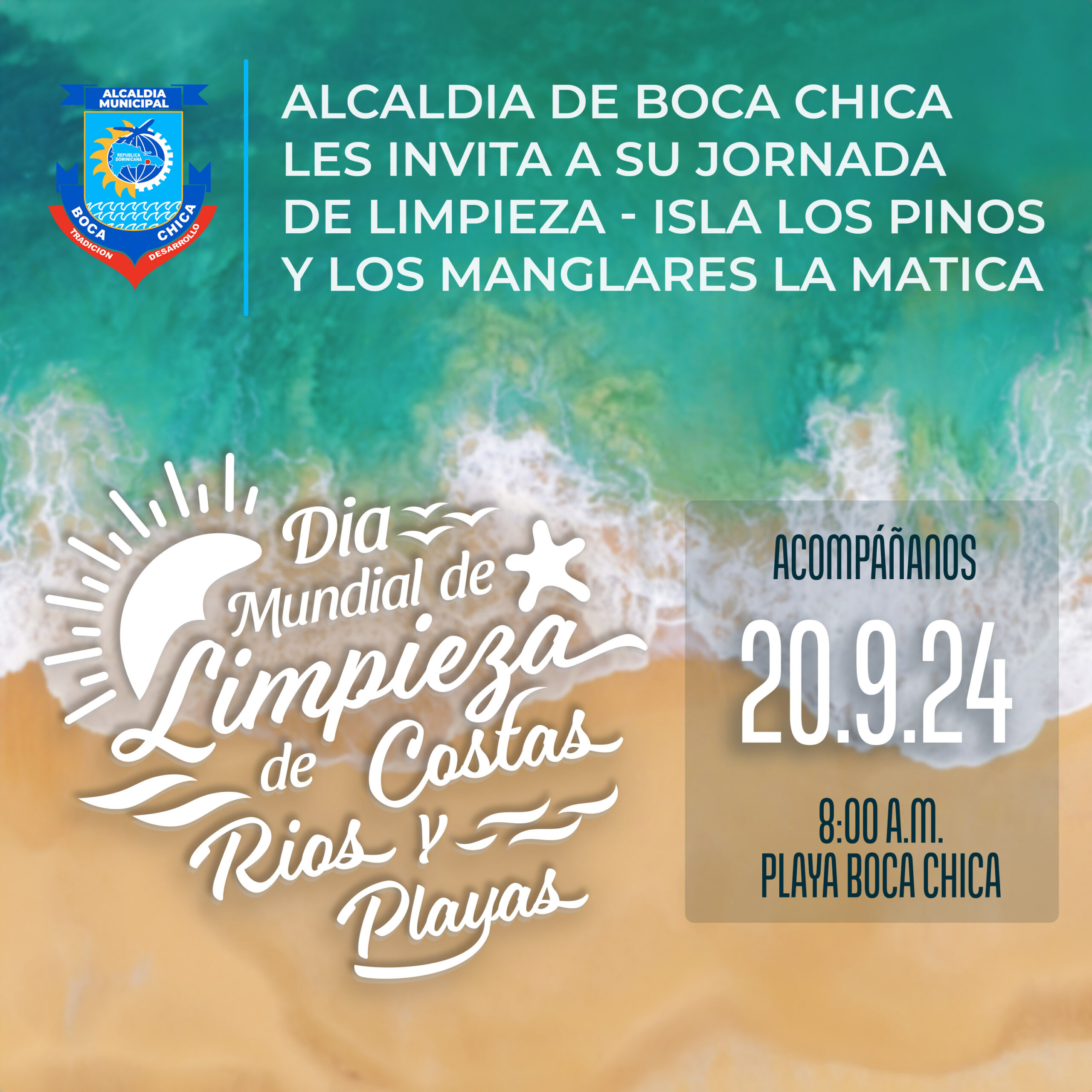 La Unidad de Gestión Ambiental Municipal le invita formalmente a participar en la Jornada Mundial de Limpieza de Costas en Boca Chica.