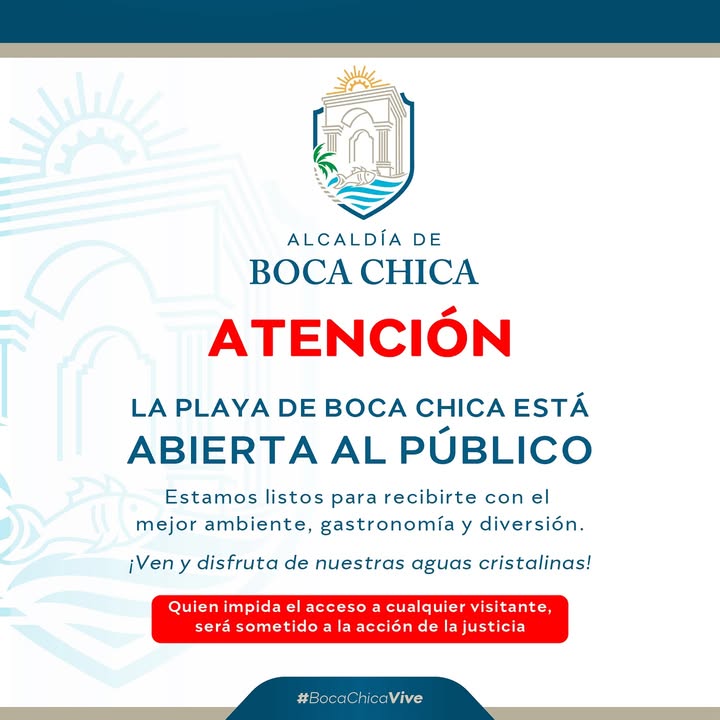 La Alcaldía de Boca Chica te invita a disfrutar de nuestras aguas cristalinas, el mejor ambiente, deliciosa gastronomía y diversión para toda la familia.