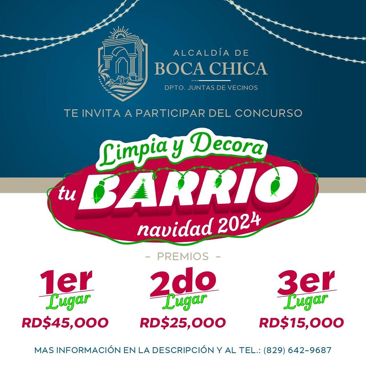 Desde el Departamento de Juntas de Vecinos y Organización Sin Fines de Lucros de la Alcaldía de Boca Chica, les extendemos una cordial invitación a participar en la actividad ”Limpia y Decora tu Barrio 2024”. Esta es una oportunidad única para mostrar el compromiso, la creatividad y el espíritu comunitario que nos une.