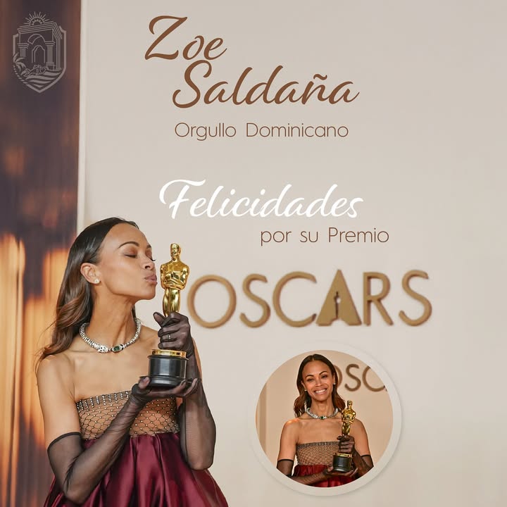 ¡La Alcaldía de Boca Chica, dirigida por Ramón Candelaria, felicita con gran orgullo a la talentosa @zoesaldana , quien ha hecho historia al convertirse en la primera actriz dominicana en obtener un Premio Óscar! 🎬🇩🇴