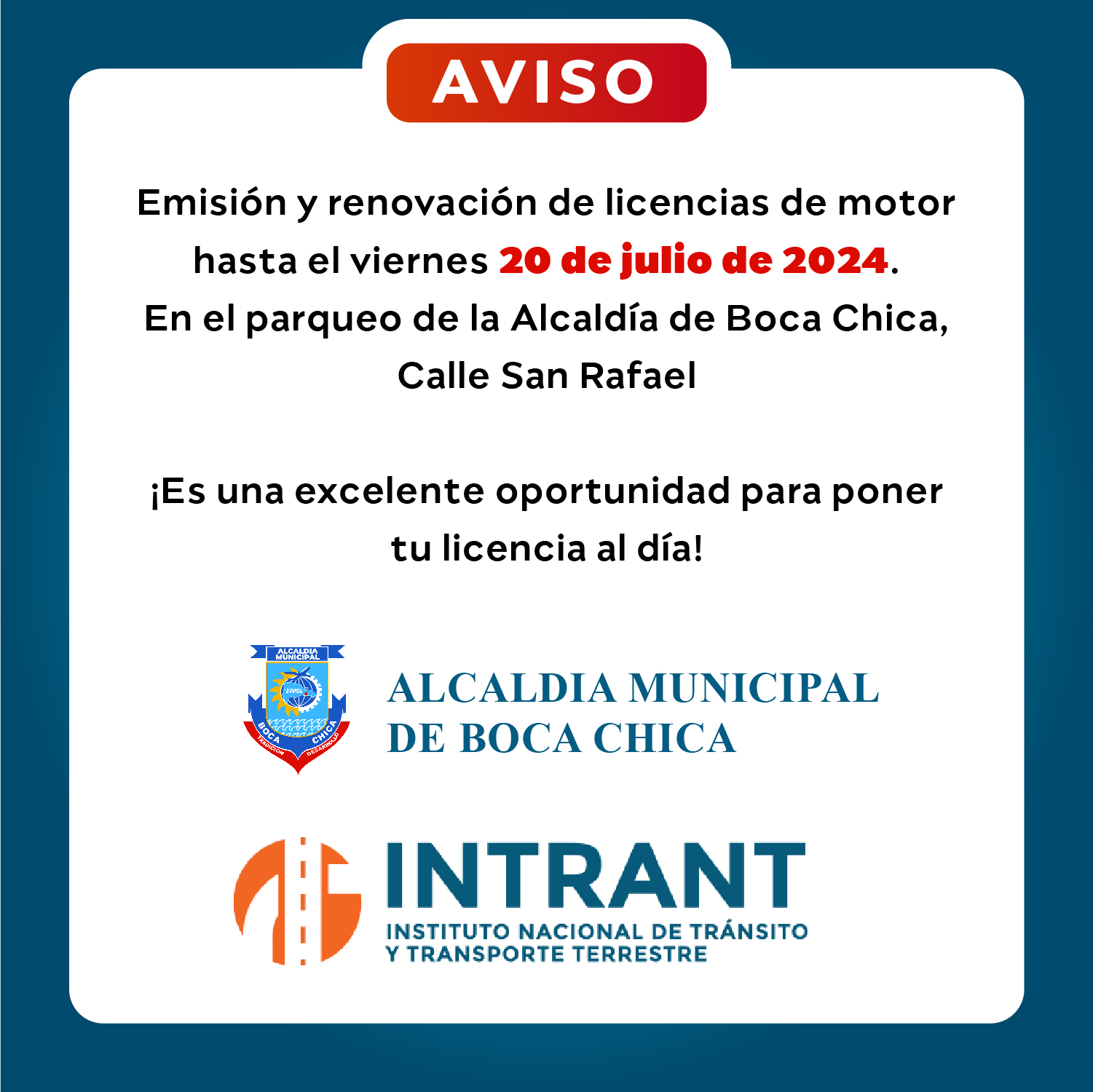 ¡Atención residentes de Boca Chica!